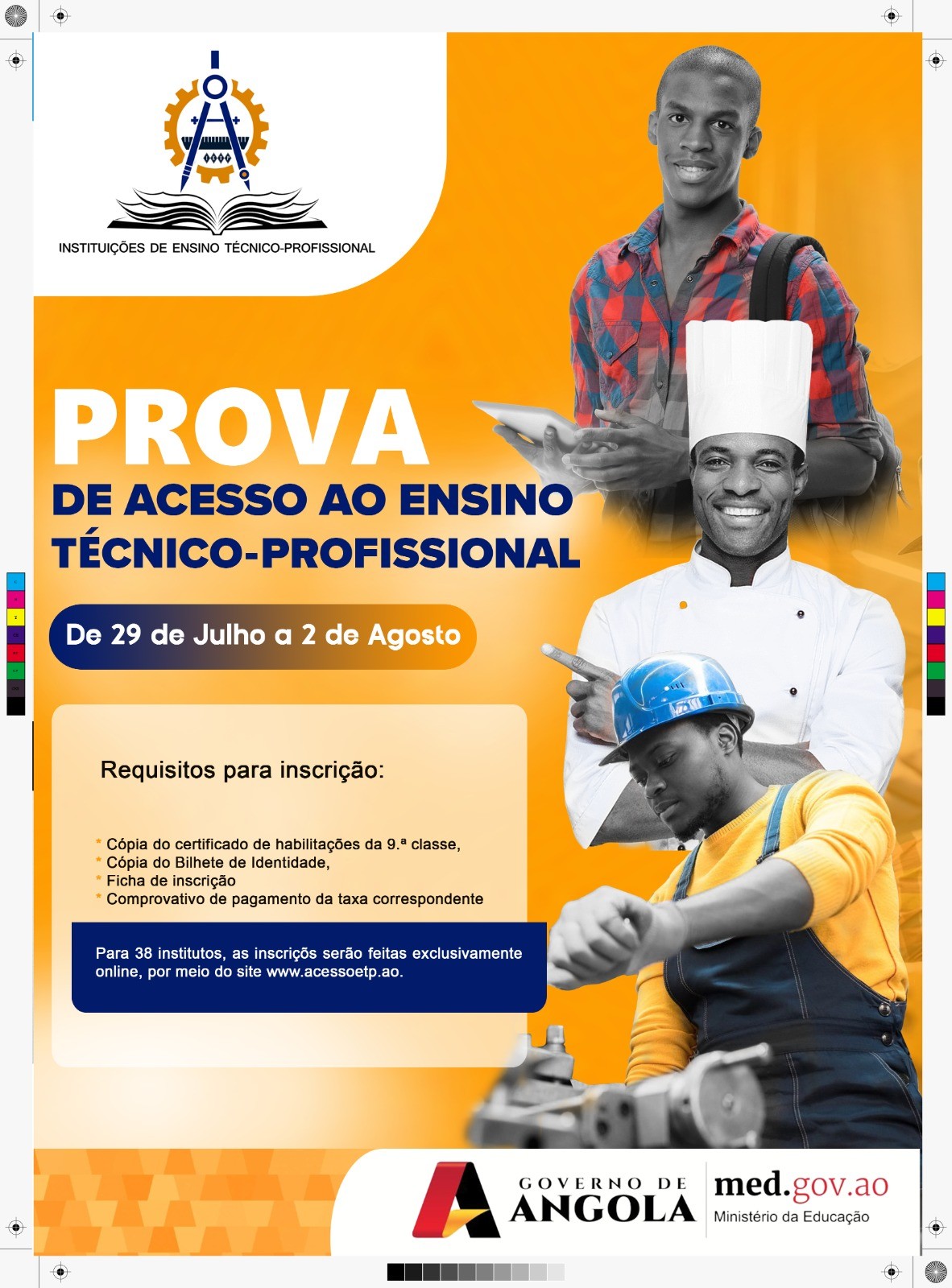 As Inscrições para testes de admissão nas instituições de ensino médio e técnico profissional começaram esta segunda feira 29 e terminam dia 02 de Agosto. podem ser feitas de forma presencial ou online através do link: www.acessoetp.ao.